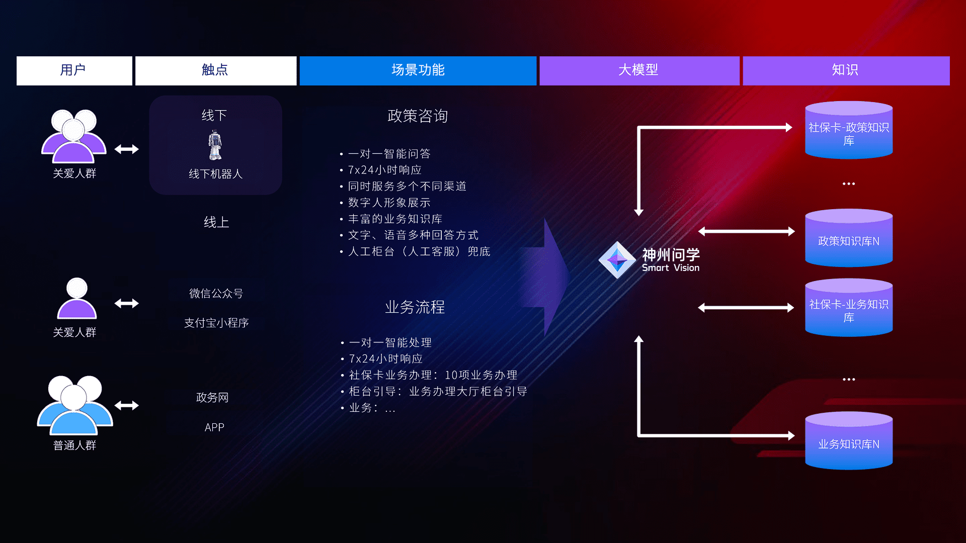 • 线上线下全覆盖:线上提供微信公众号、、、、支付宝小程序、、、政务网、、app多种渠道,,,与线下机器人形成完整服务体系。。
